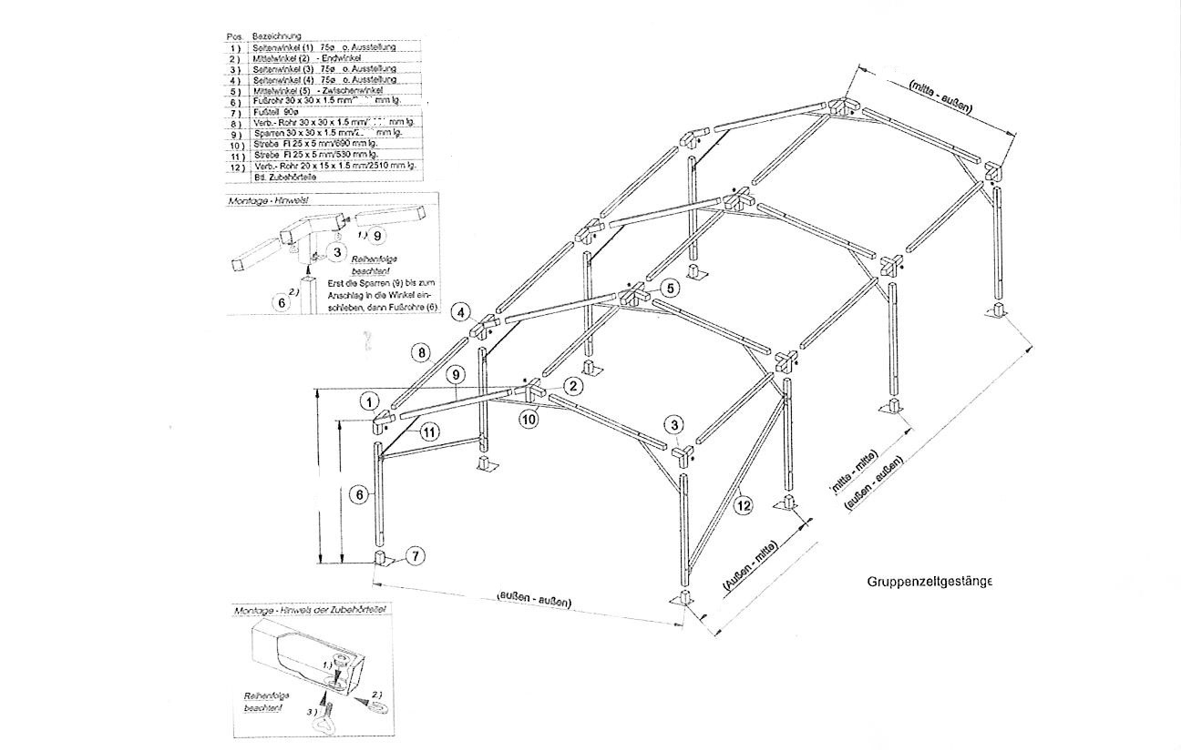 → Giebelwände werden per Haken in die Dachplane eingehängtSchnelle, einfache Montage durch durchdachte Teilelogik